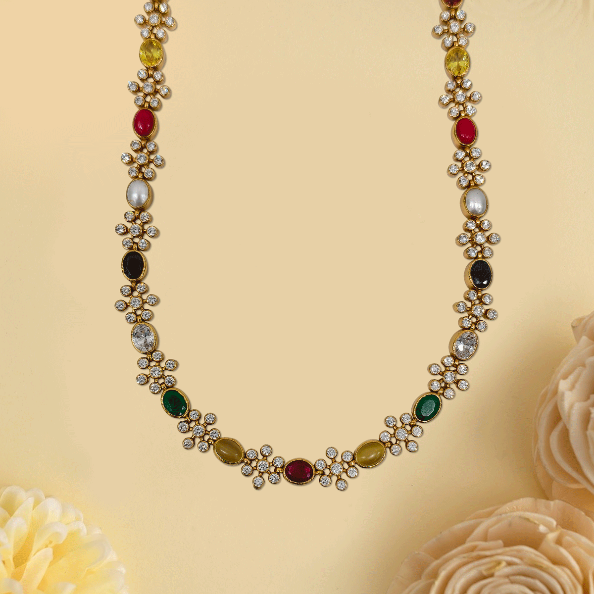 Designed to make you stand out, this 92.5 sterling silver haram with gold plating and sparkling stones adds a regal touch to your wedding and festive looks. A statement piece you’ll cherish for special moments.