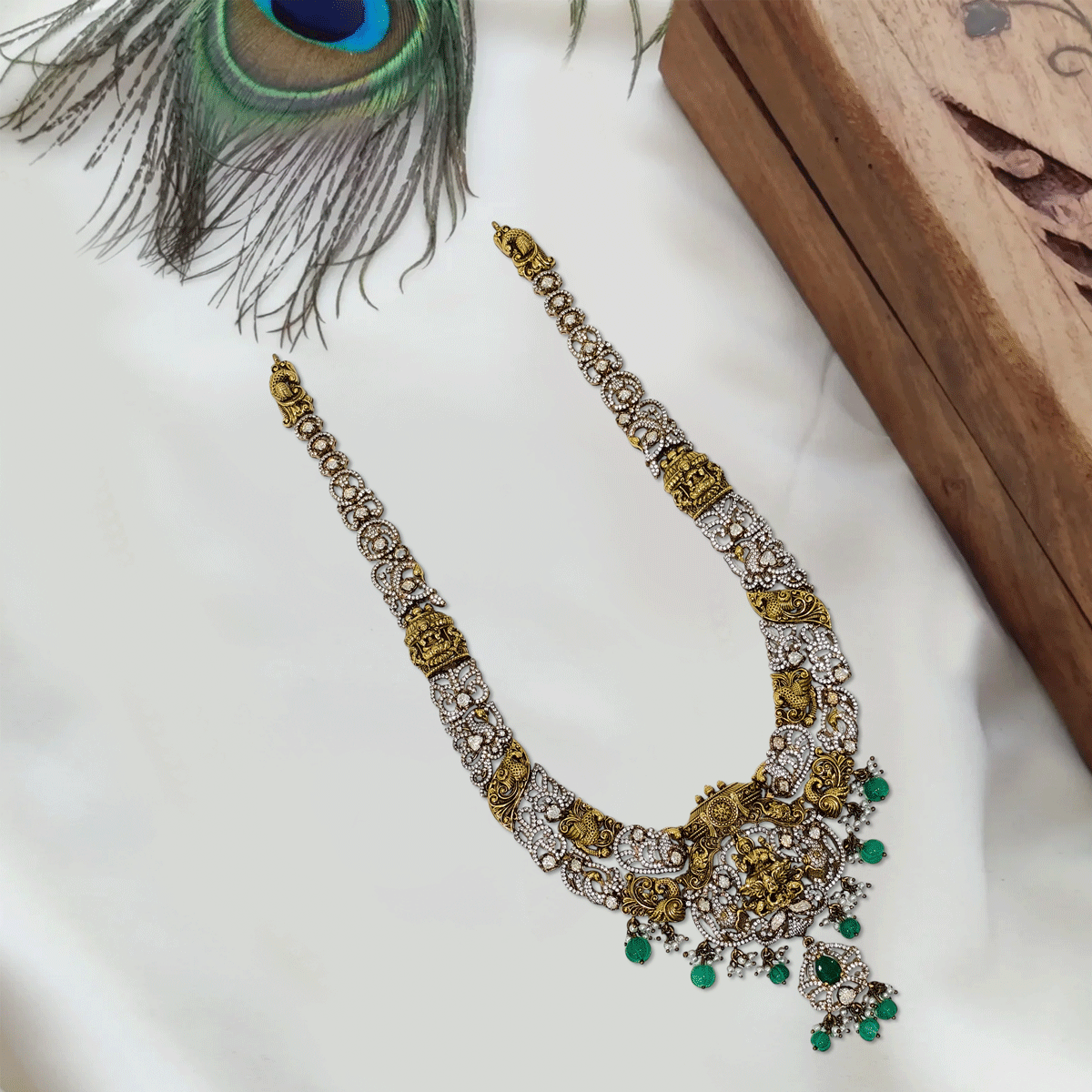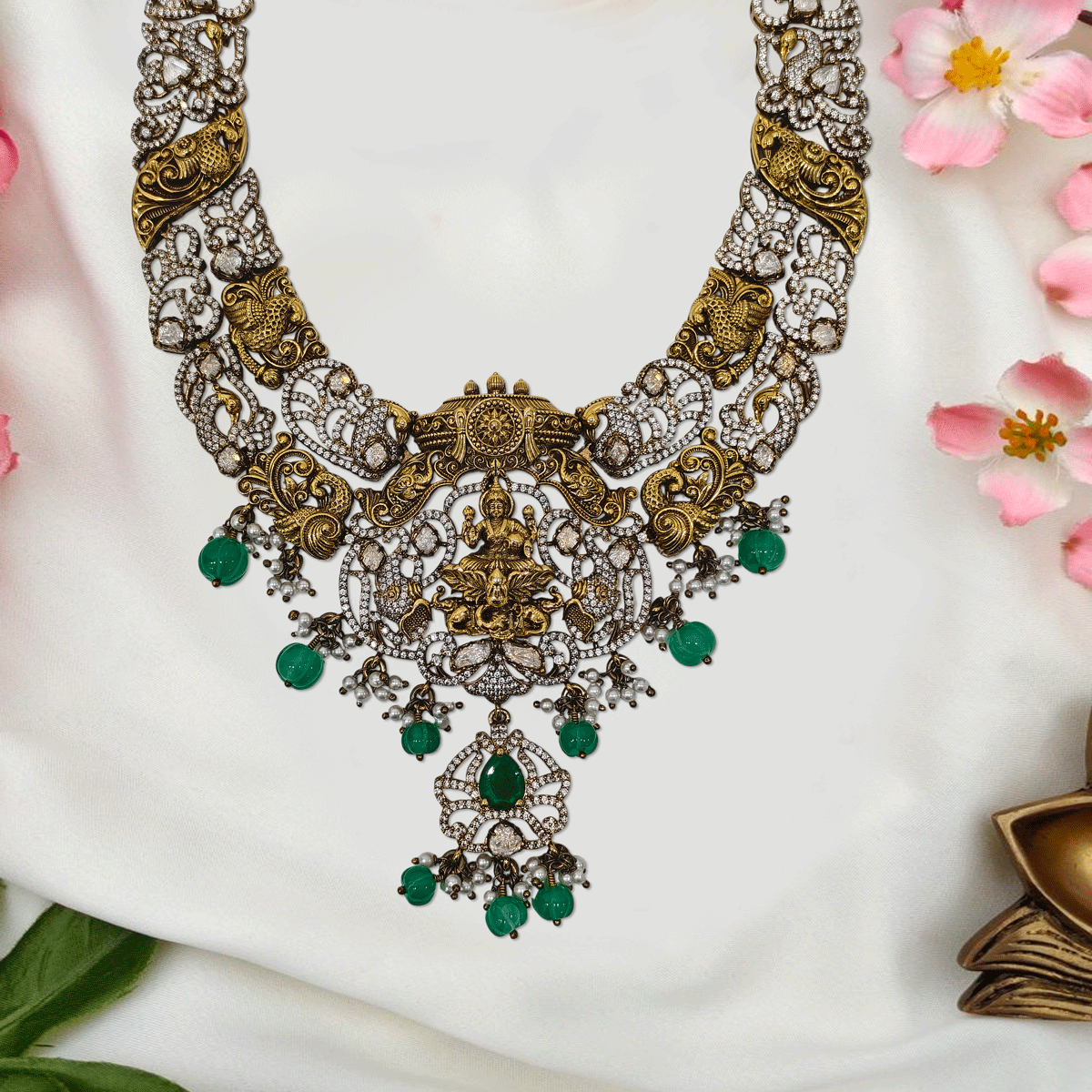 Designed to make you stand out, this 92.5 sterling silver haram with gold plating and sparkling stones adds a regal touch to your wedding and festive looks. A statement piece you’ll cherish for special moments.