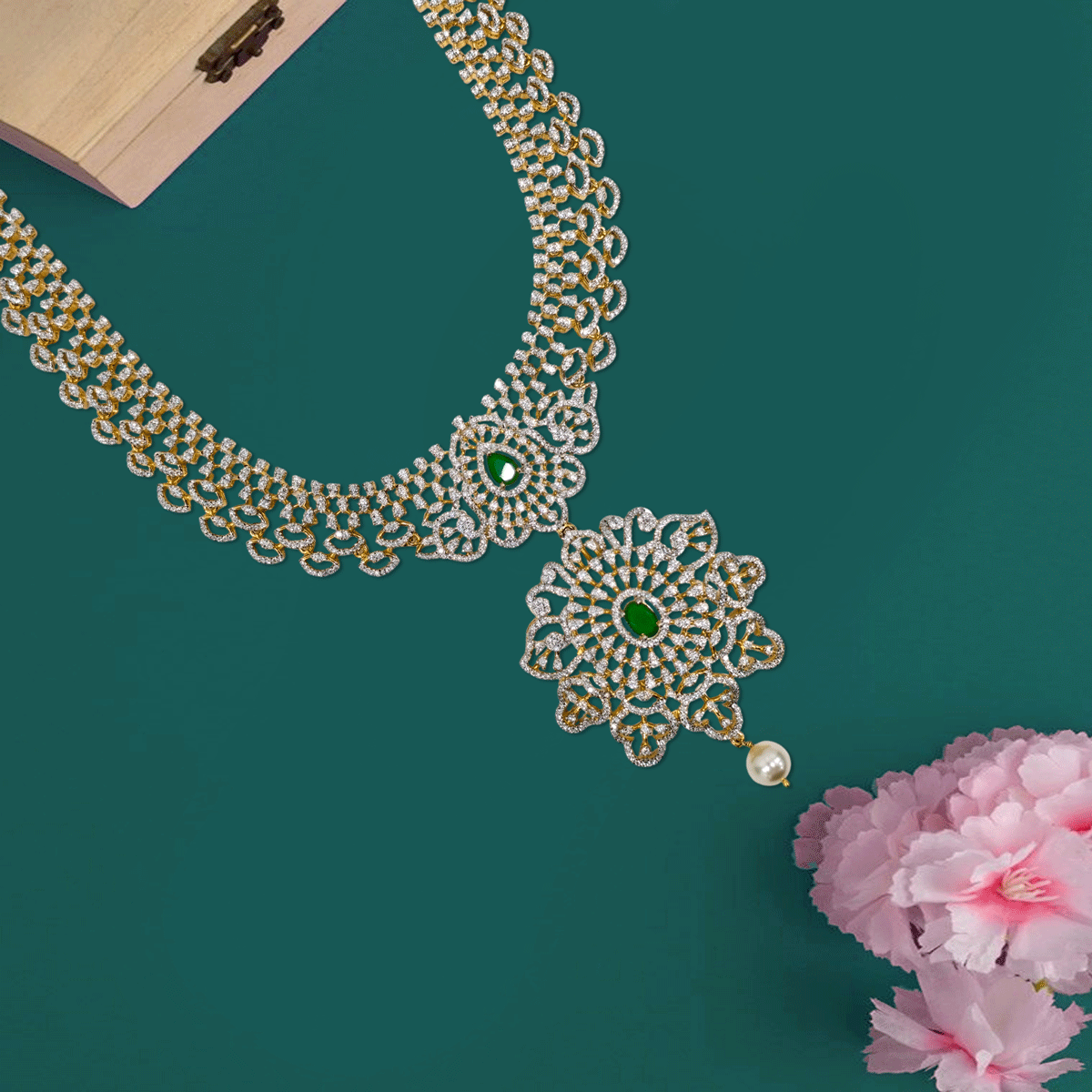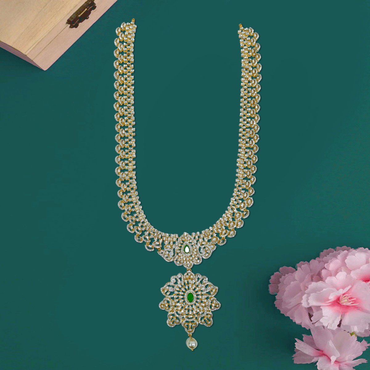 Designed to make you stand out, this 92.5 sterling silver haram with gold plating and sparkling stones adds a regal touch to your wedding and festive looks. A statement piece you’ll cherish for special moments.