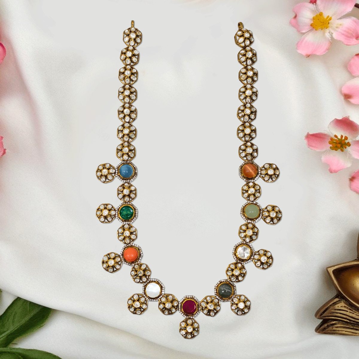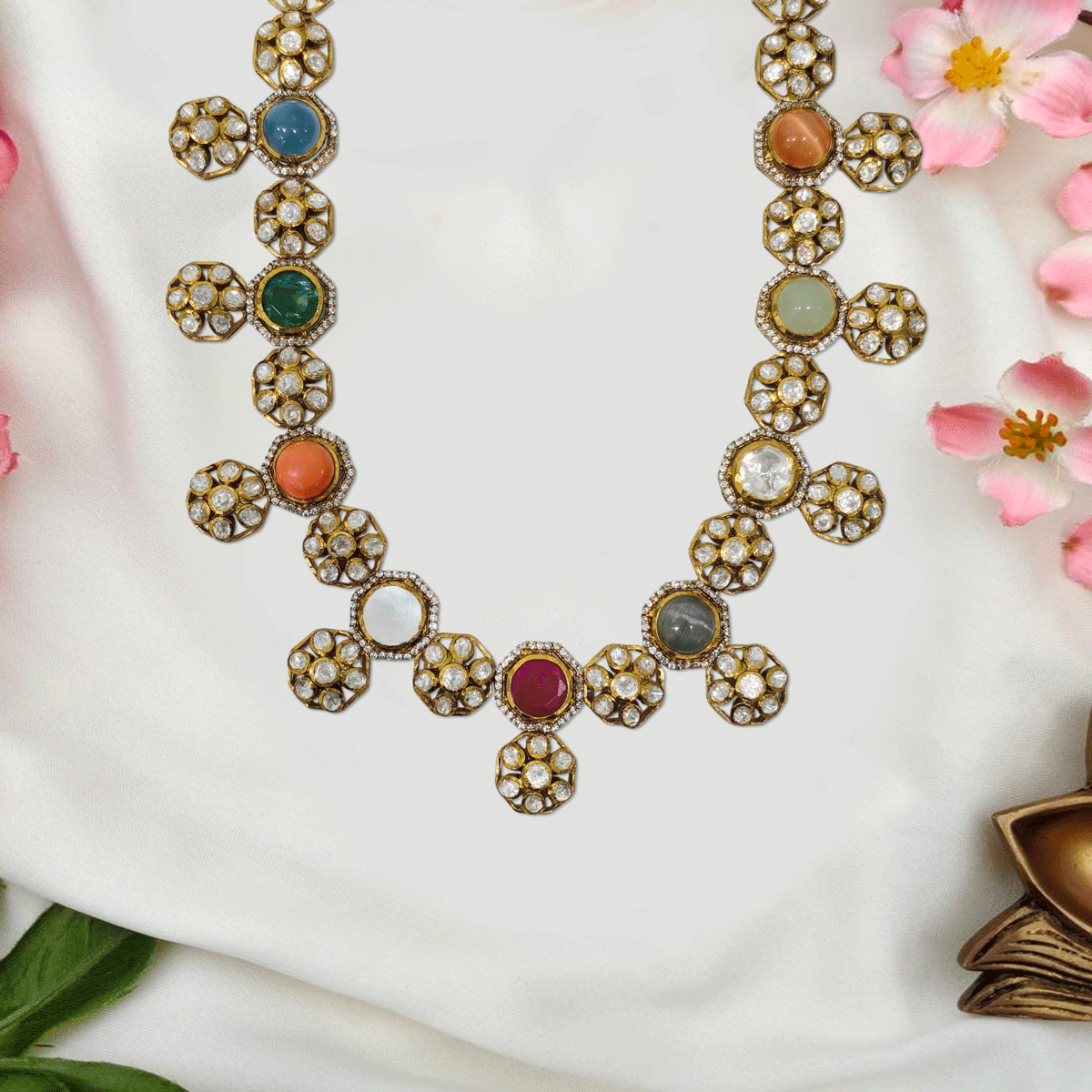 Designed to make you stand out, this 92.5 sterling silver haram with gold plating and sparkling stones adds a regal touch to your wedding and festive looks. A statement piece you’ll cherish for special moments.