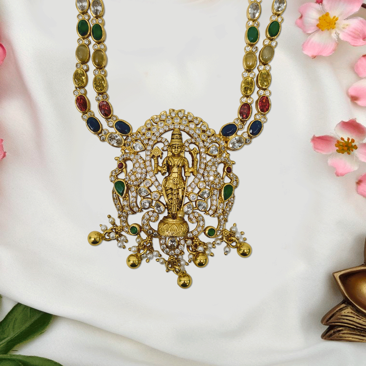 Designed to make you stand out, this 92.5 sterling silver haram with gold plating and sparkling stones adds a regal touch to your wedding and festive looks. A statement piece you’ll cherish for special moments.