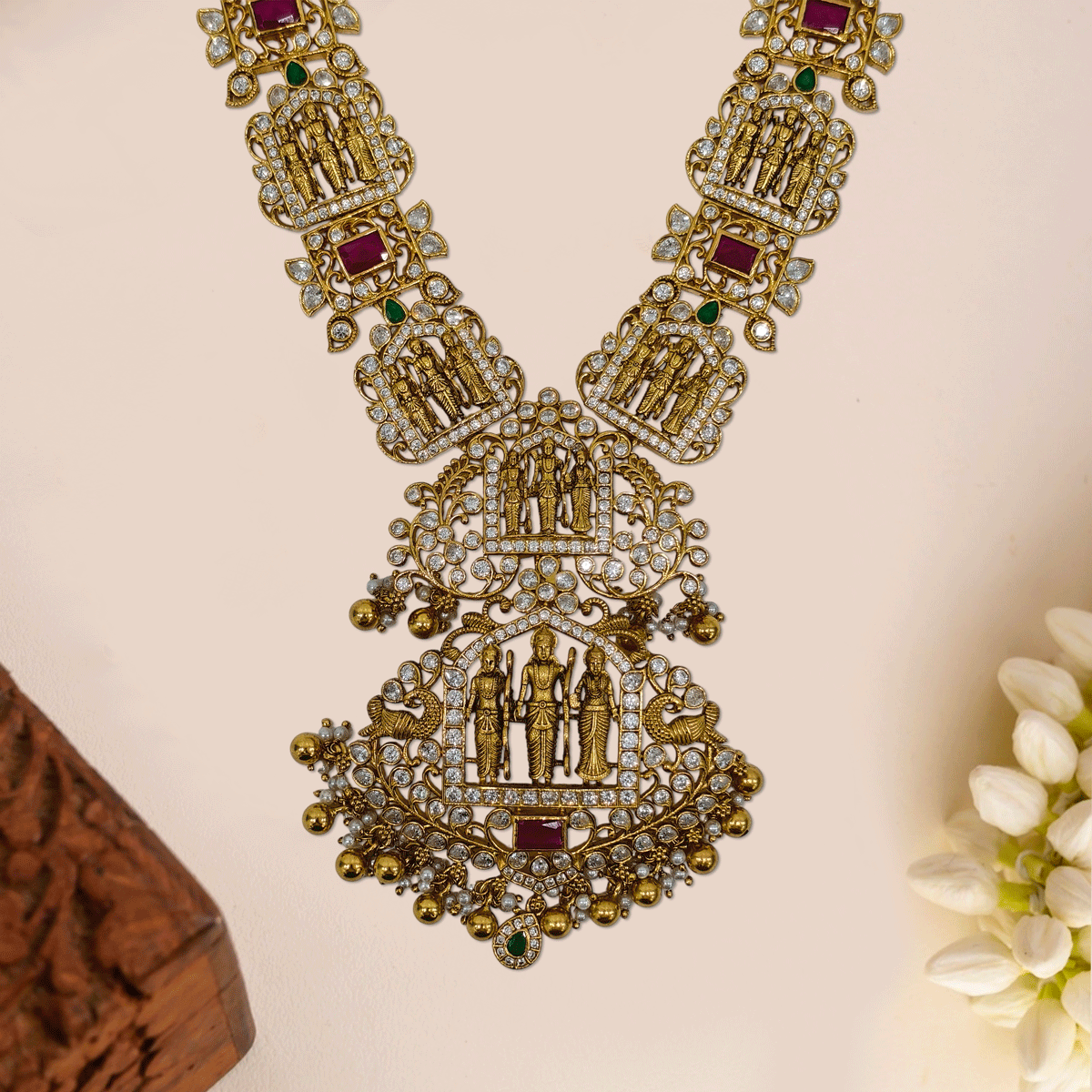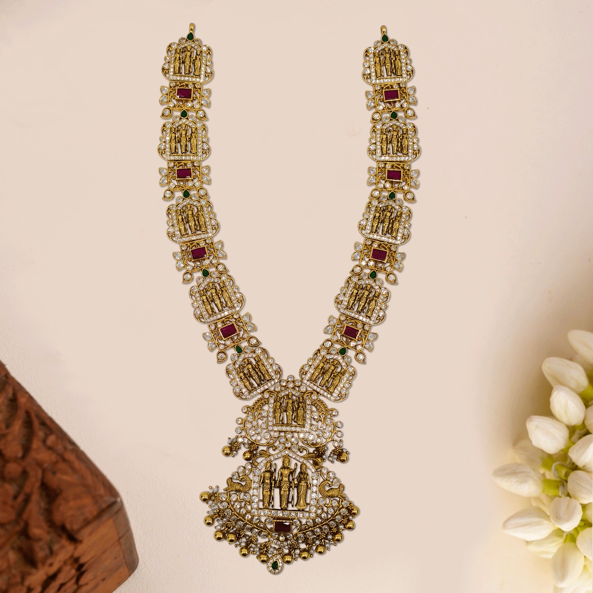 Designed to make you stand out, this 92.5 sterling silver haram with gold plating and sparkling stones adds a regal touch to your wedding and festive looks. A statement piece you’ll cherish for special moments.