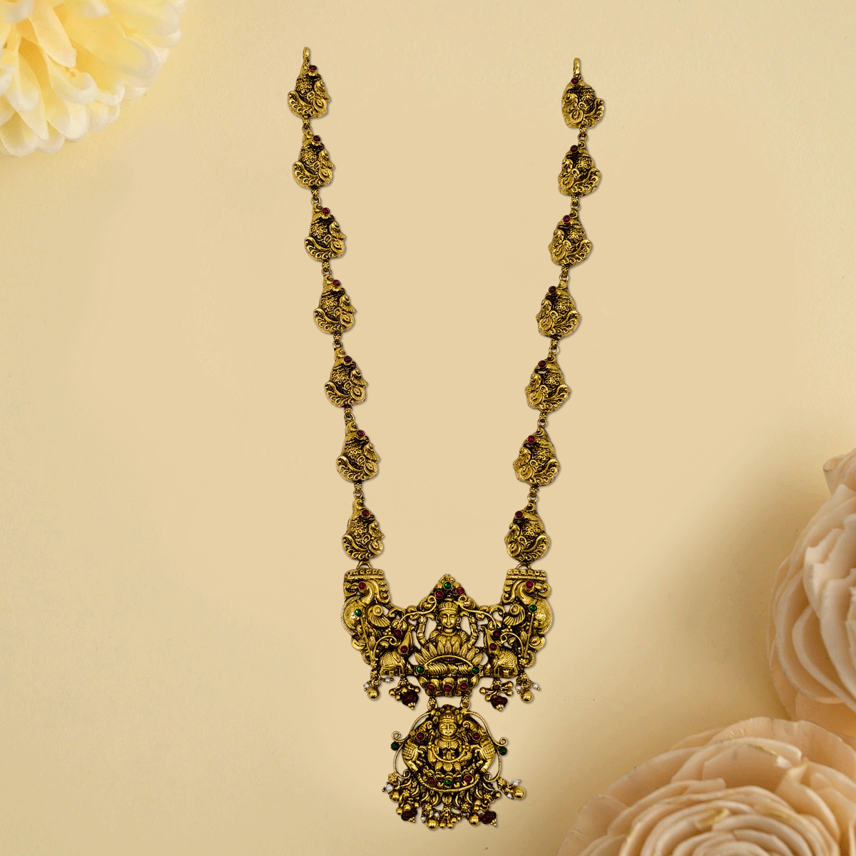 Celebrate culture and craftsmanship with this magnificent 92.5 silver Nagas Haram, adorned with meticulously carved serpent motifs and luxurious gold plating. Its elongated design drapes gracefully, adding a regal touch to traditional attire. Ideal for festive occasions, temple ceremonies, or wedding celebrations, this haram is a treasured symbol of elegance, spirituality, and legacy.