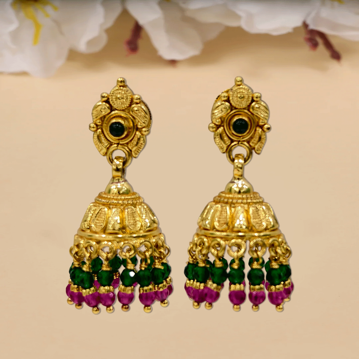 Step into celebrations with our Majestic Jhumkas. Featuring elaborate craftsmanship and intricate detailing, these earrings are perfect for making every occasion memorable. Ideal for festive wear, they bring timeless beauty and elegance to your jewelry collection.