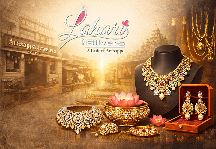 Lahari Silvers, a unit of Arasappa Jewellers, brings decades of heritage and craftsmanship to modern jewellery. Founded under the legacy of Arasappa Jewellers in 1945 by Mr. R. Arasappa Gounder, we continue to create pieces that reflect elegance, purity, and quality.